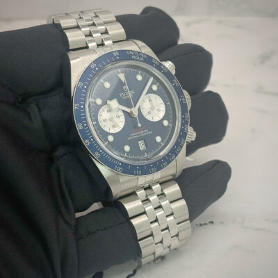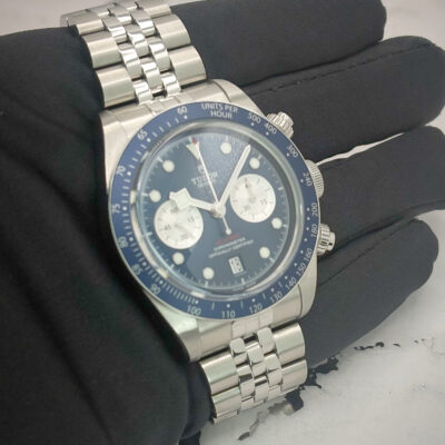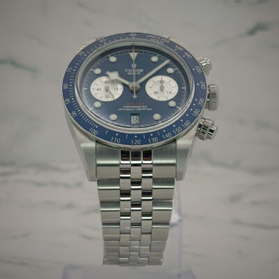 A striking blend of vintage racing spirit and modern Tudor design, the Black Bay Chrono Boutique Edition stands out with its exclusive blue dial—available only through select Tudor boutiques. Crafted in stainless steel and powered by the MT5813 chronometer-certified automatic chronograph movement, this timepiece delivers both precision and presence.