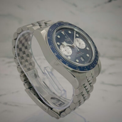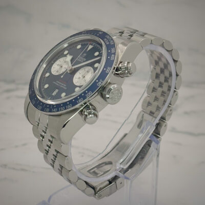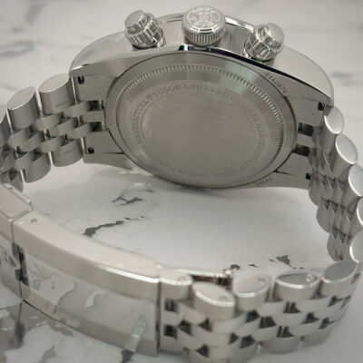 The 41 mm case balances robust sport styling with refined detailing, featuring a tachymeter-engraved bezel and screw-down pushers for superior durability. Paired with Tudor’s signature design DNA, it’s an exceptional chronograph for those who value rarity and performance.